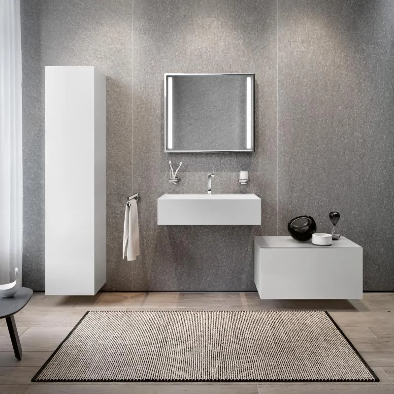 Эти покрытия обладают не только эстетическим эффектом, но и практическими преимуществами: устойчивость к пятнам и отпечаткам, лёгкость ухода, защита от влаги, долговечность. Это делает мебель Keuco привлекательным выбором даже для комнат с повышенной влажностью.