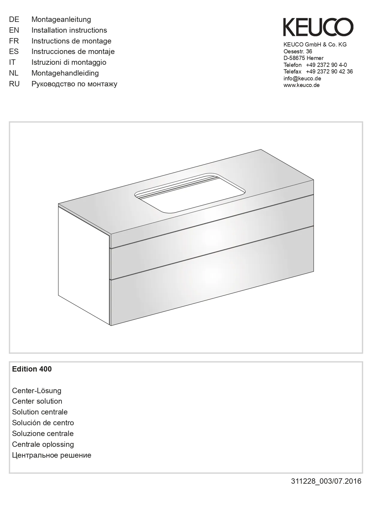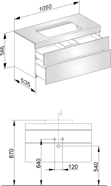 Со столешницей, без отверстия под смеситель, подходит к керамическому умывальнику арт. 31570, 2 фронтальных выдвижных ящика с нажимным открыванием push-to-open и доводчиком, вкл. пластиковый сифон 1 1/4 x 32. Для внутреннего оснащения выдвижных ящиков