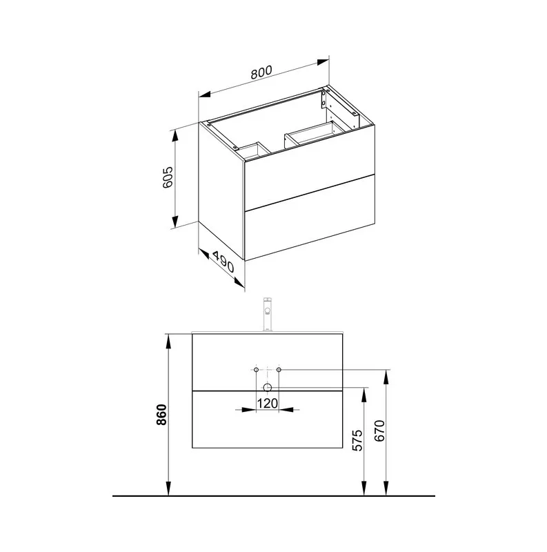 Подходит к керамическому умывальнику арт. 32960, 2 фронтальных выдвижных ящика с доводчиком, вкл. пластиковый сифон 1 1/4 x 32.