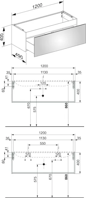 Подходит к керамическому умывальнику арт. 32980, 1 выдвижной фронтальный ящик с доводчиком, вкл. пластиковый сифон 1 1/4 x 32.