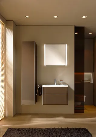 Keuco использует разнообразные поверхности, специально разработанные для ванной комнаты: текстурированный лак, высокоглянцевое покрытие, мягкий матовый сатин-лак, декоративное покрытие, а также стекло и натуральную древесину.