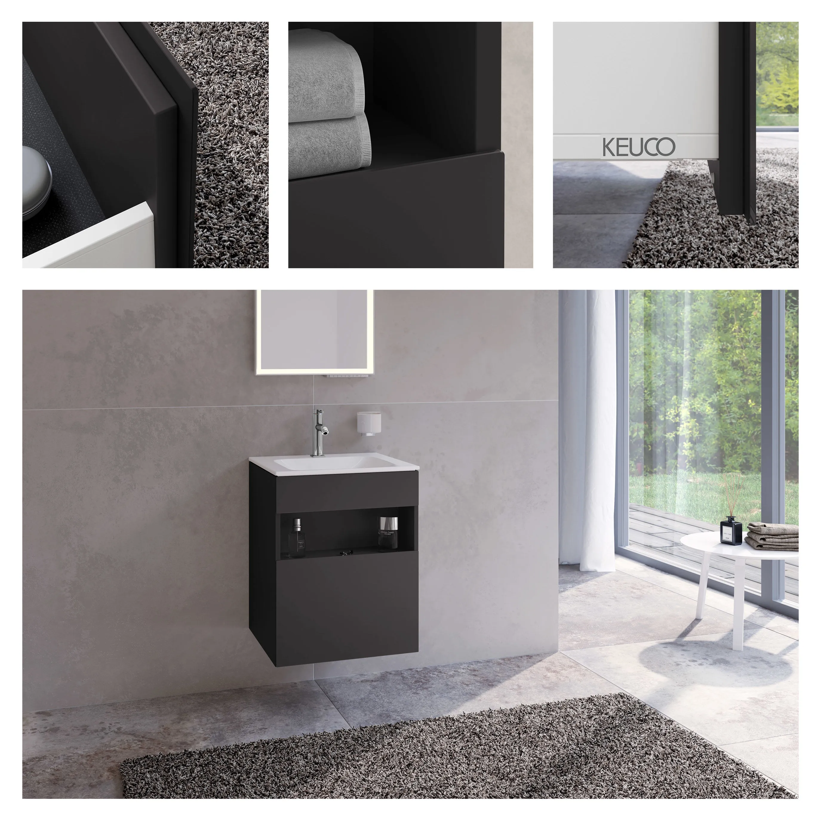 Тумба под умывальник Keuco STAGELINE, 32842970000, 500x625x490 мм, к/ф: вулканит (ламинир. матовый)/вулканит матовый (стекло)