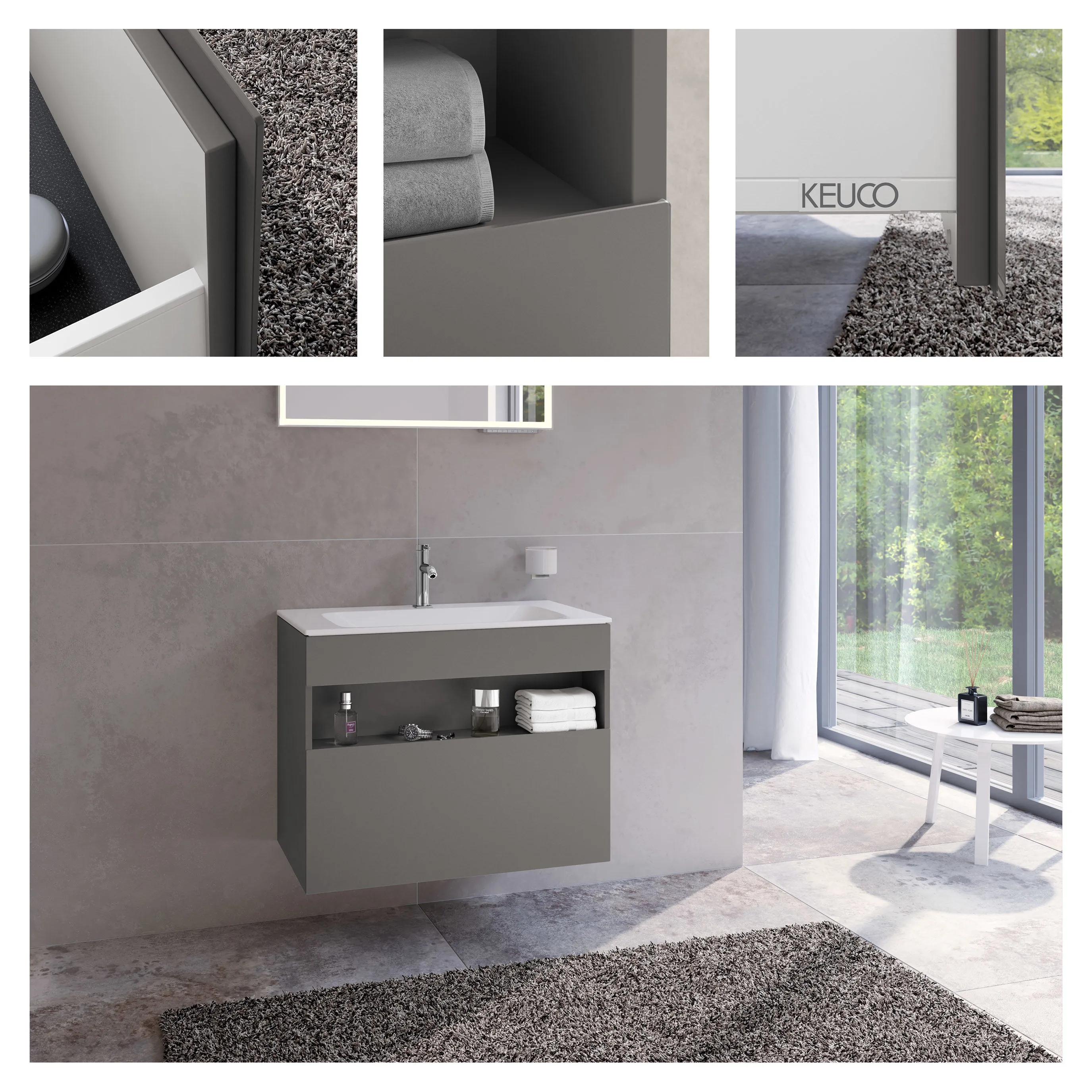 Эти покрытия обладают не только эстетическим эффектом, но и практическими преимуществами: устойчивость к пятнам и отпечаткам, лёгкость ухода, защита от влаги, долговечность. Это делает мебель Keuco привлекательным выбором даже для комнат с повышенной влажностью.