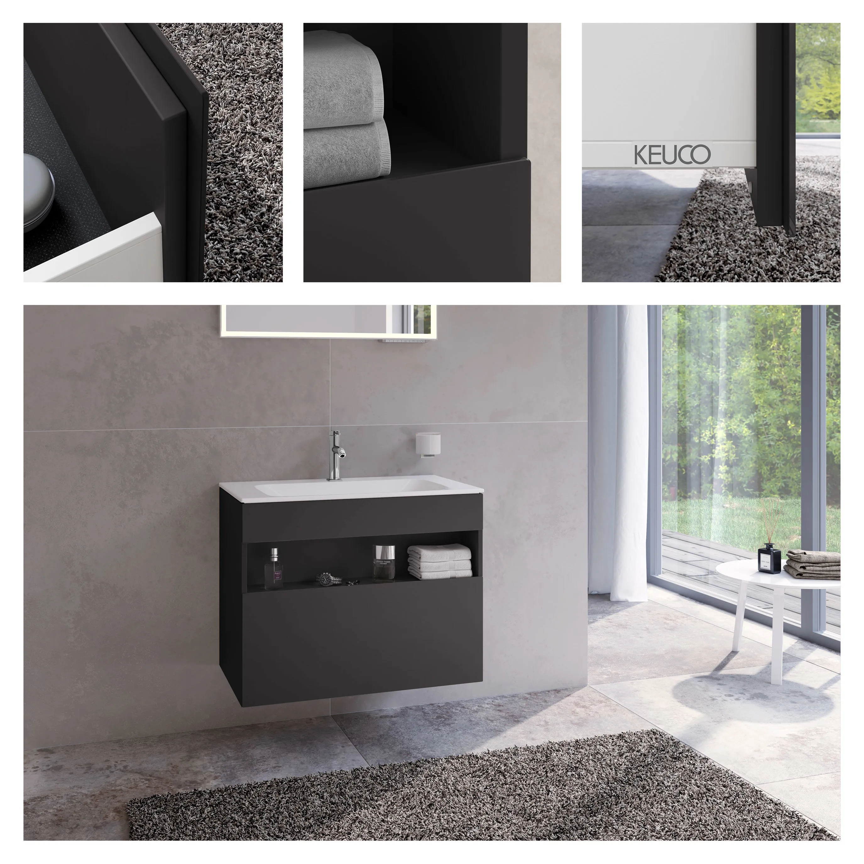 Эти покрытия обладают не только эстетическим эффектом, но и практическими преимуществами: устойчивость к пятнам и отпечаткам, лёгкость ухода, защита от влаги, долговечность. Это делает мебель Keuco привлекательным выбором даже для комнат с повышенной влажностью.