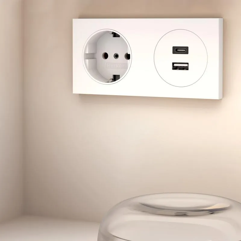 С oсвещение, есть розеткa и точка зарядки USB/USB-C. Примечание: требуется сетевое подключение с включённой фазой для освещения и не включённой фазой для