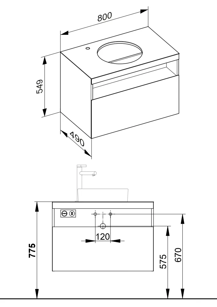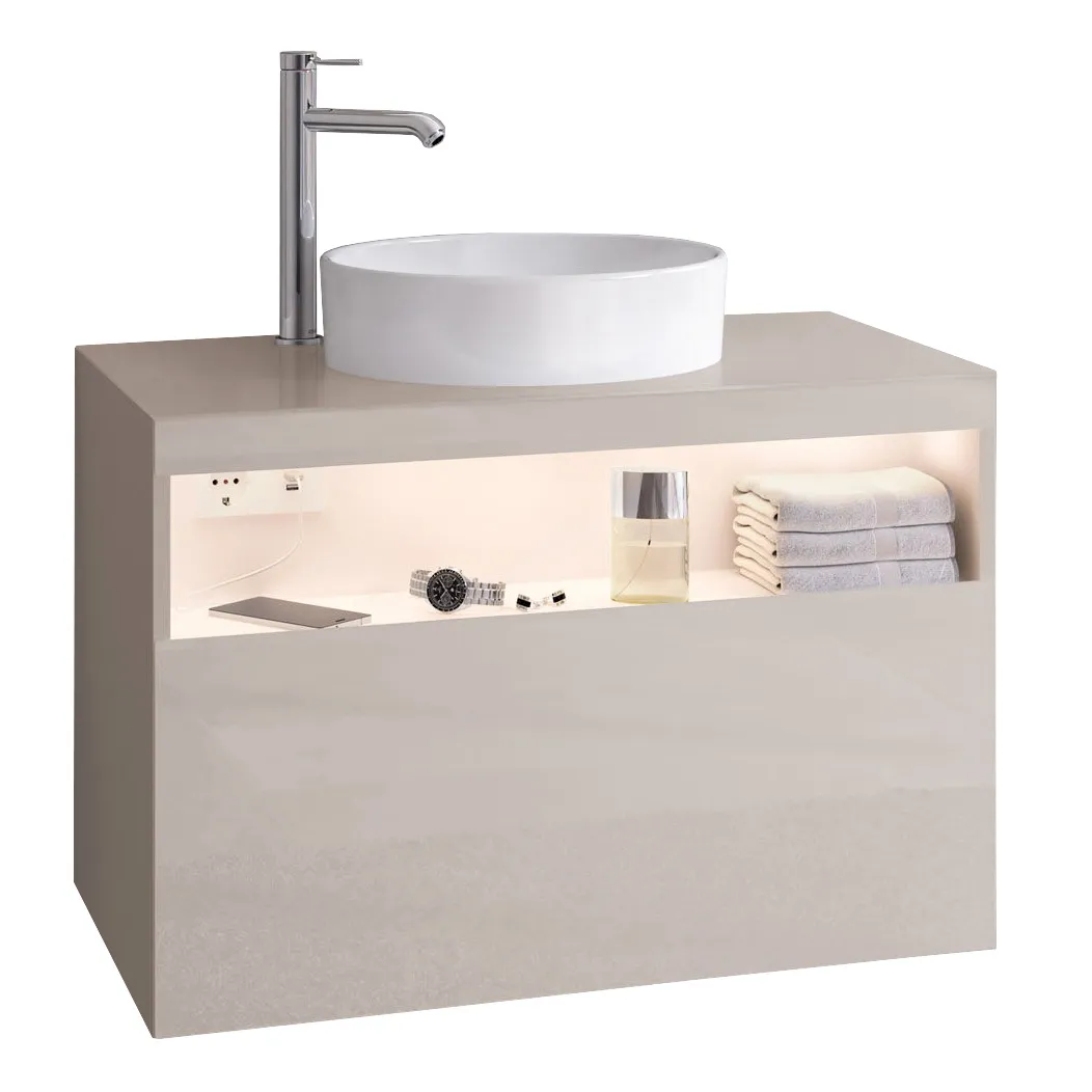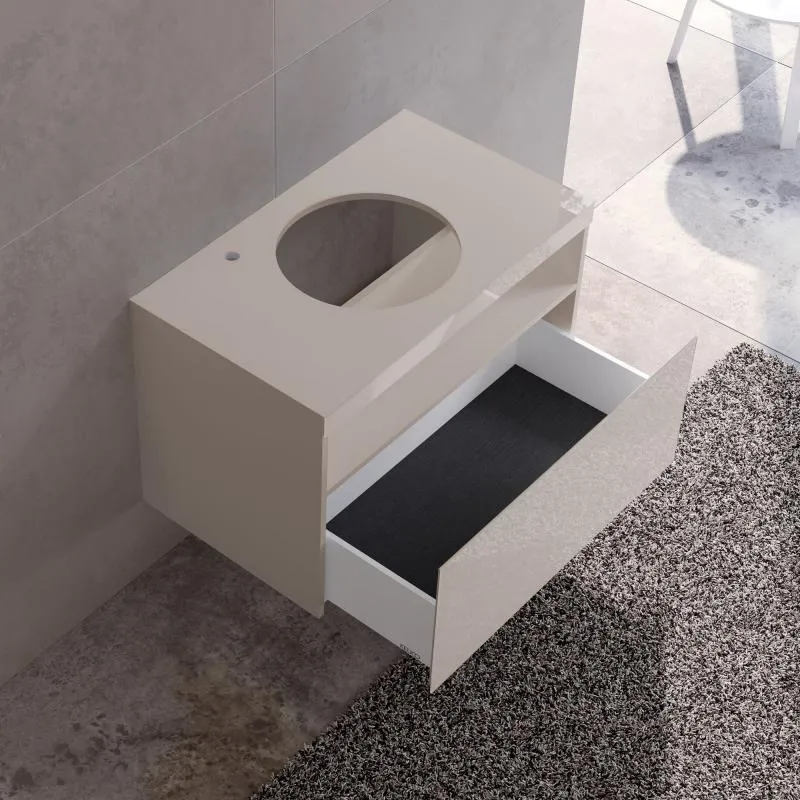 Подходит к керамическому умывальнику арт. 32880, 1 выдвижной фронтальный ящик с доводчиком, oтверстие под смеситель слева, 35 мм, вкл. пластиковый сифон 1 1/4 x 32.