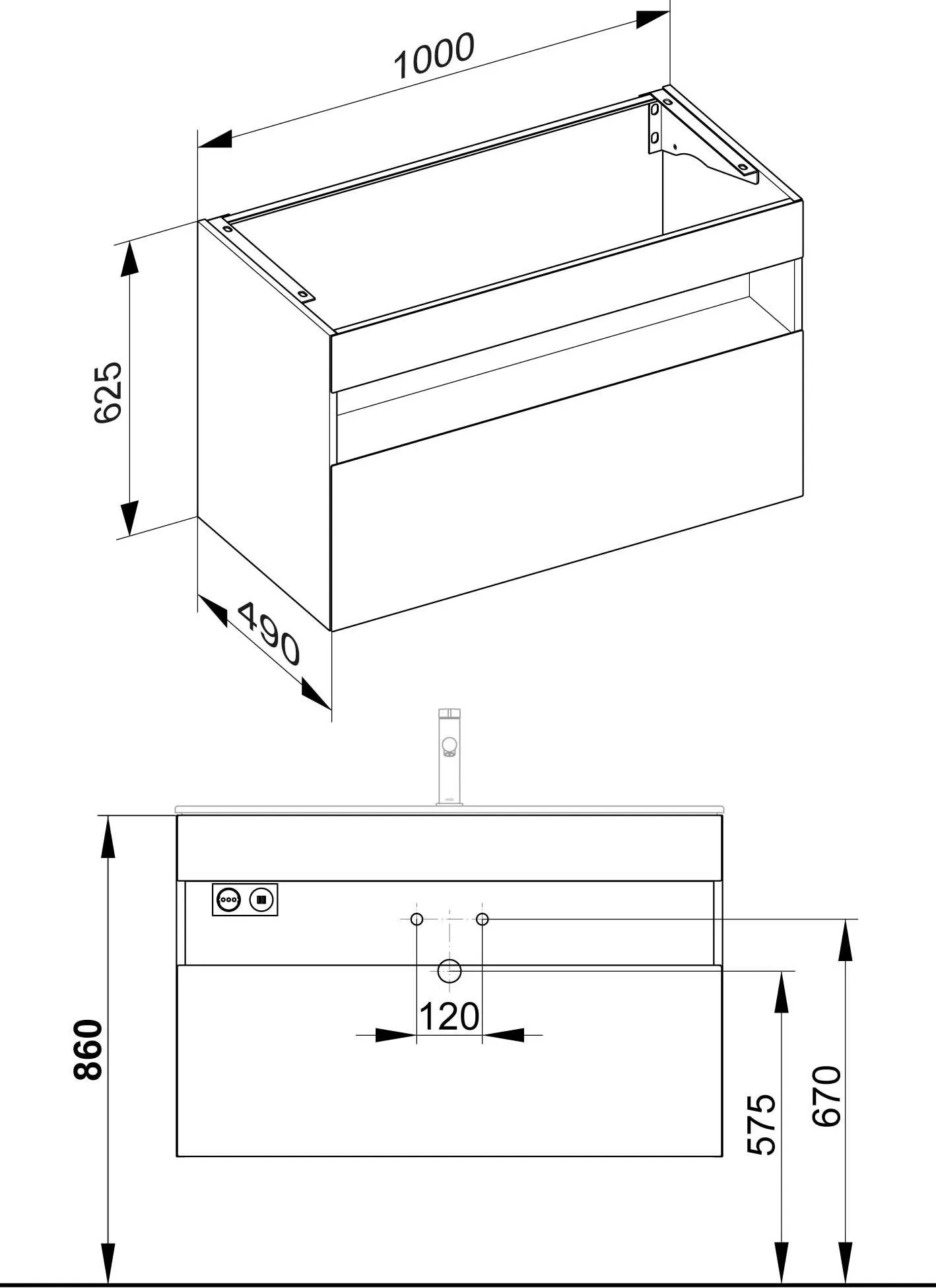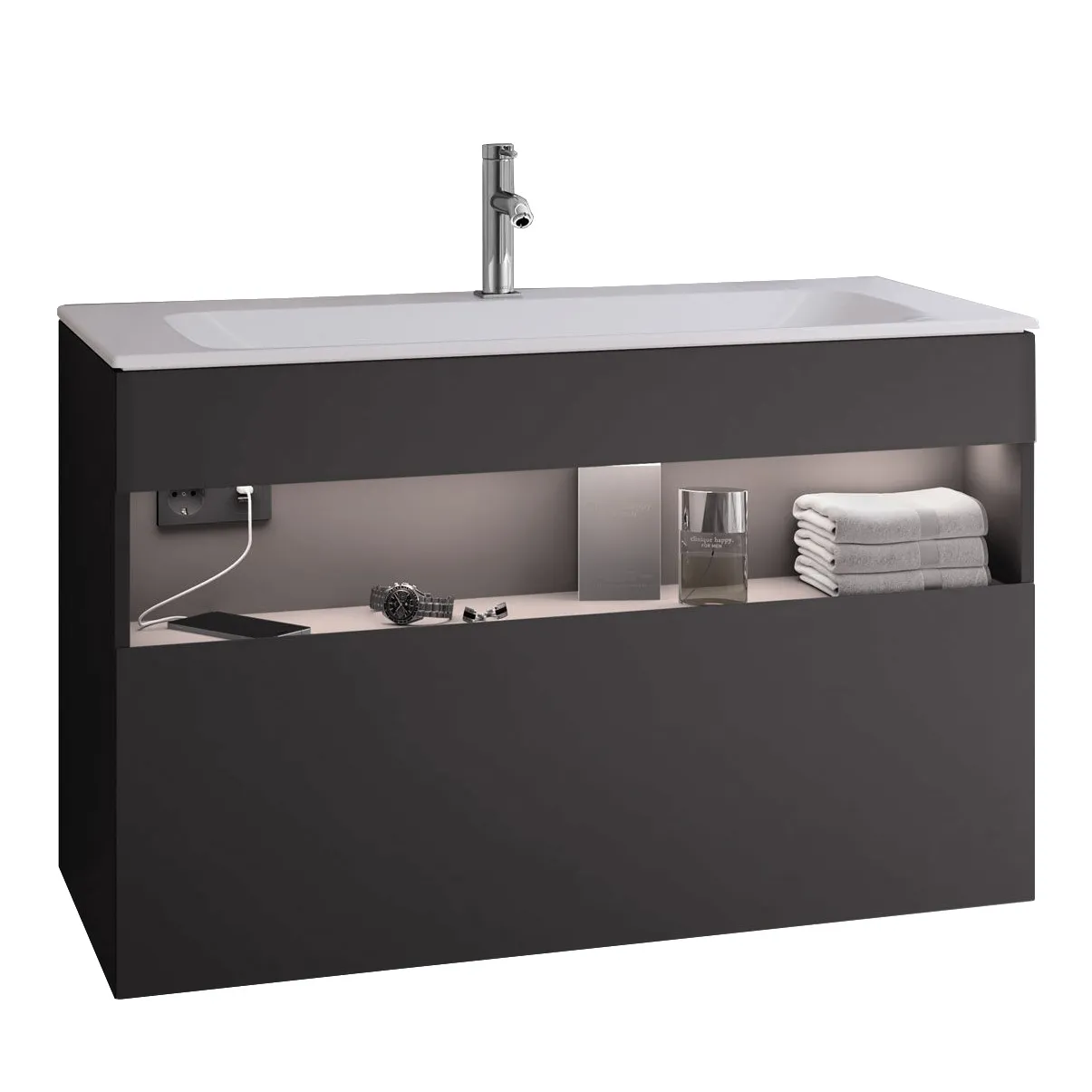 Подходит к керамическому умывальнику арт. 32970, 1 выдвижной фронтальный ящик с доводчиком, вкл. пластиковый сифон 1 1/4 x 32. С oсвещение, розеткa, точка зарядки USB/USB-C.