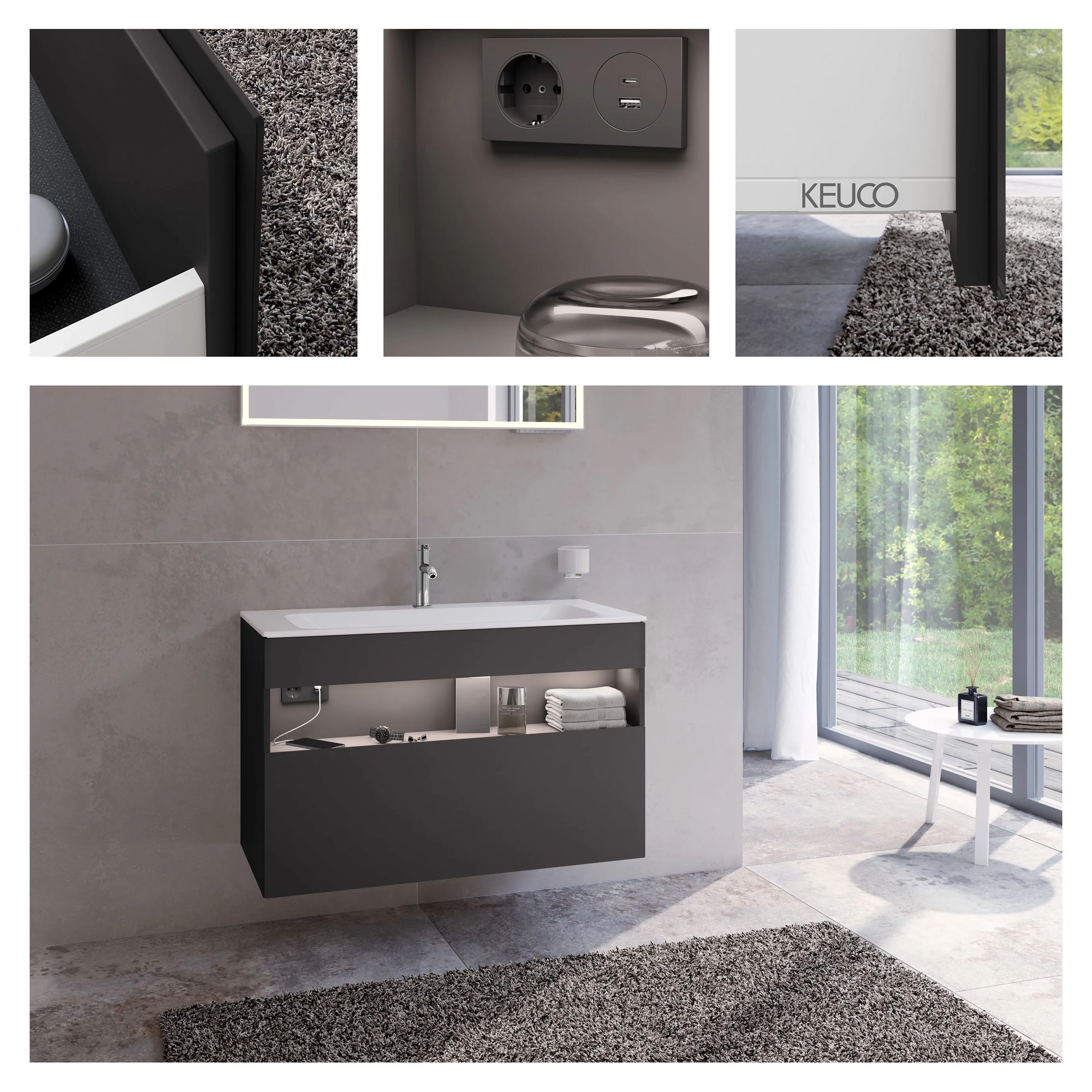 Эти покрытия обладают не только эстетическим эффектом, но и практическими преимуществами: устойчивость к пятнам и отпечаткам, лёгкость ухода, защита от влаги, долговечность. Это делает мебель Keuco привлекательным выбором даже для комнат с повышенной влажностью.