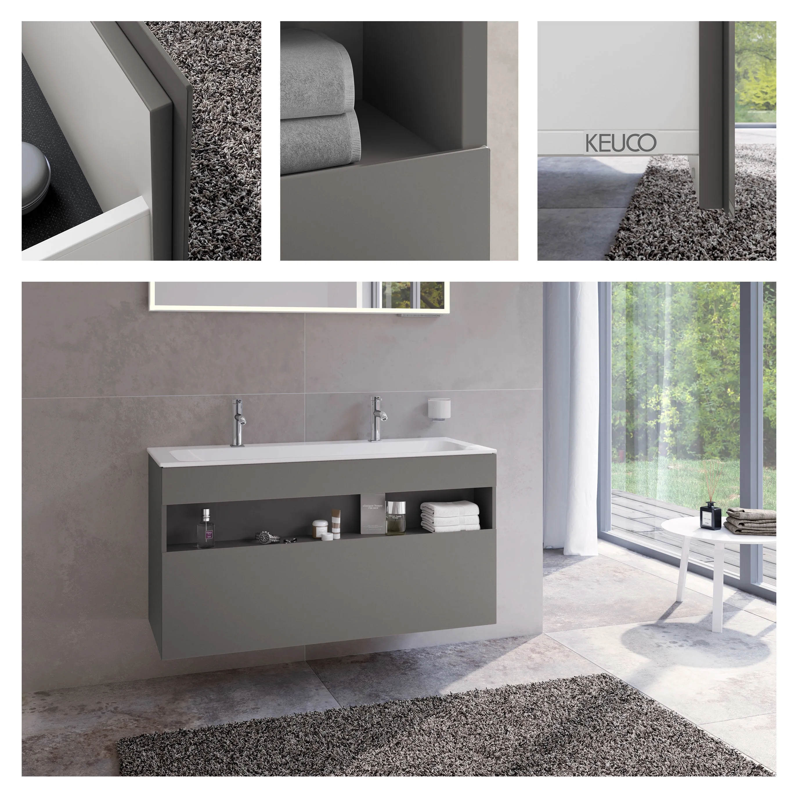 Эти покрытия обладают не только эстетическим эффектом, но и практическими преимуществами: устойчивость к пятнам и отпечаткам, лёгкость ухода, защита от влаги, долговечность. Это делает мебель Keuco привлекательным выбором даже для комнат с повышенной влажностью.