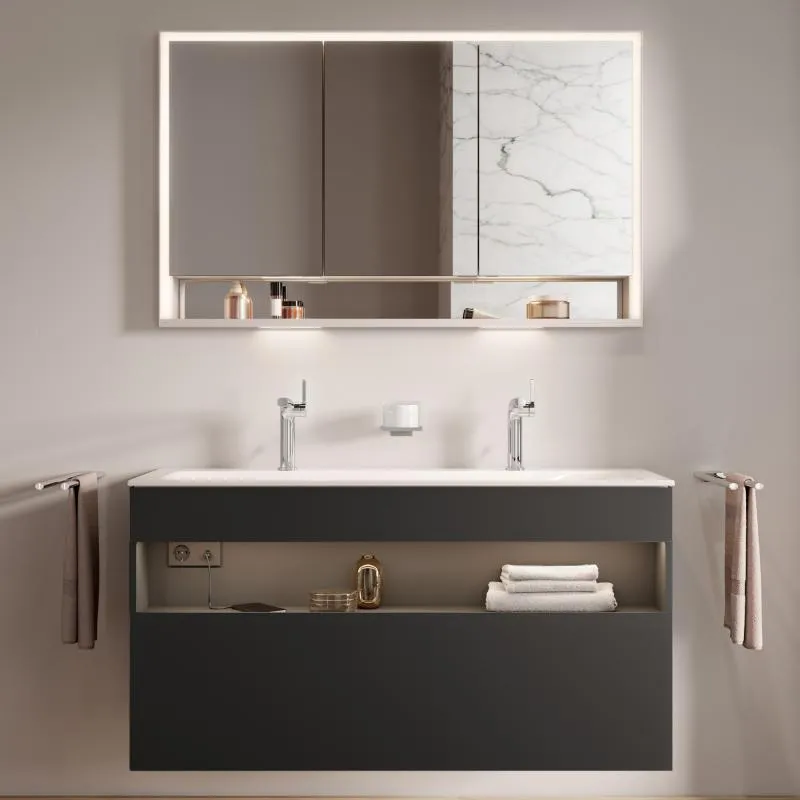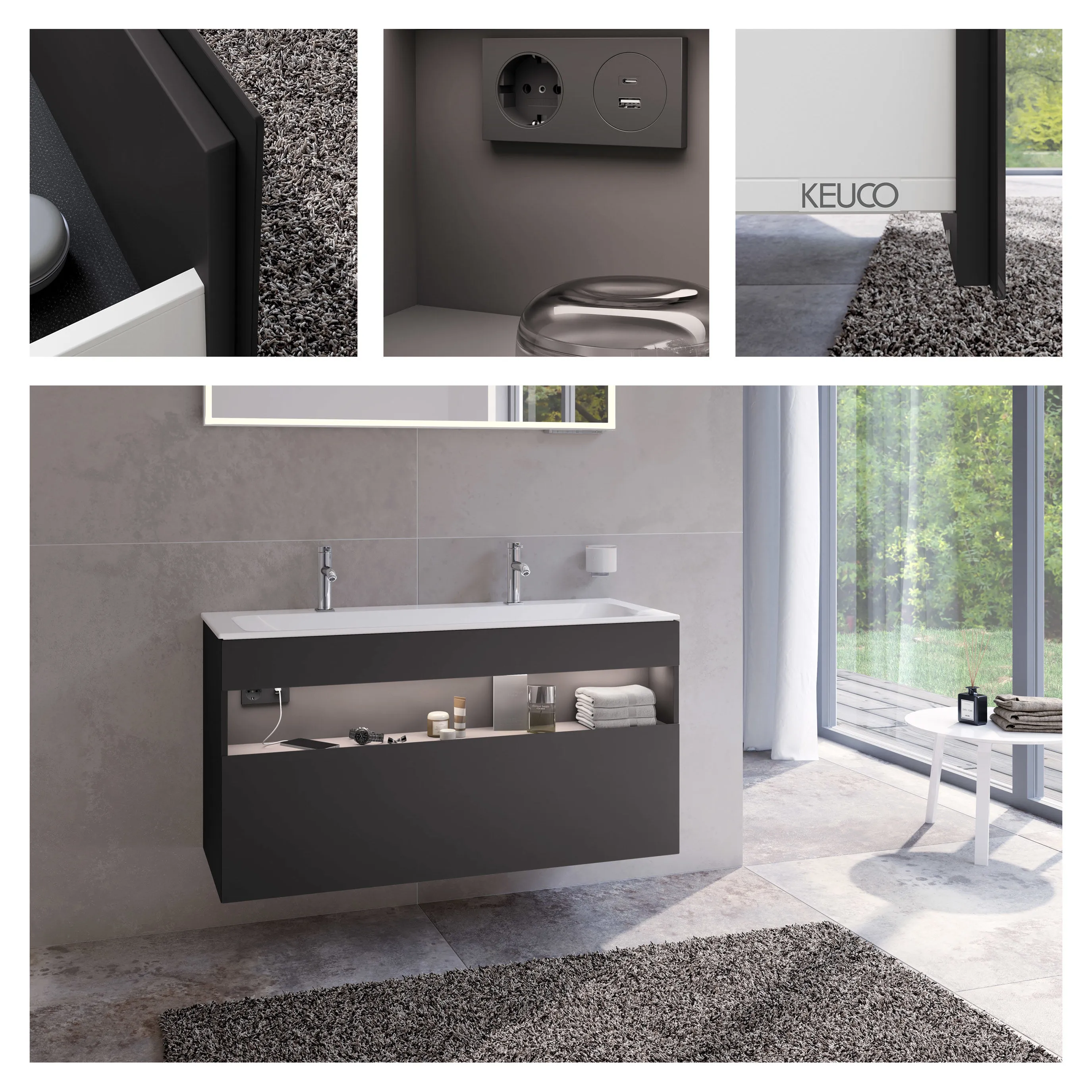 Эти покрытия обладают не только эстетическим эффектом, но и практическими преимуществами: устойчивость к пятнам и отпечаткам, лёгкость ухода, защита от влаги, долговечность. Это делает мебель Keuco привлекательным выбором даже для комнат с повышенной влажностью.