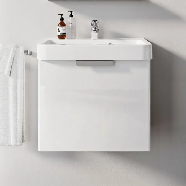 Тумба под умывальник BeHappy II разработана под прямой умывальник BeHappy II. Оборудована высоким ящиком и большим пространством для хранения. Корпус тумбы белый, дверца в глянцевом белом цвете (лакированная MDF). Поставляется собранной в комплекте с монтажным набором (винты, петли, пробки). Тумба монтируется на стену. Для целостного дизайна ванной комнаты мы рекомендуем комбинировать тумбу для умывальника BeHappy II с другими изделиями концепции BeHappy II (умывальником BeHappy II, зеркалом BeHappy II), смесителями и другими изделиями RAVAK.