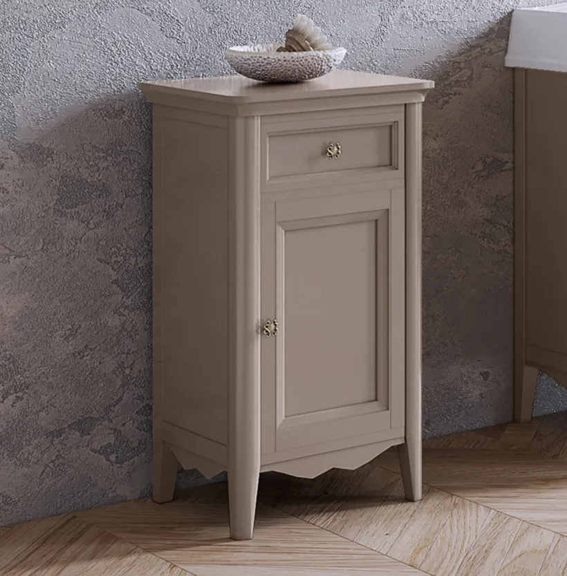 Тумба под раковину Tw Veronica 50.2/45x40/37.4xh86.7, 1 распашная дверка 1 выдвижной ящик, доводчики Blum, петли справа-DX,, tortora, ручки riflesso VER2150D-T