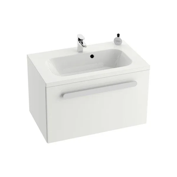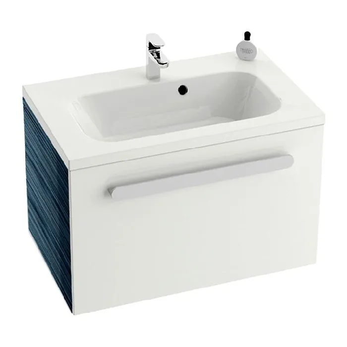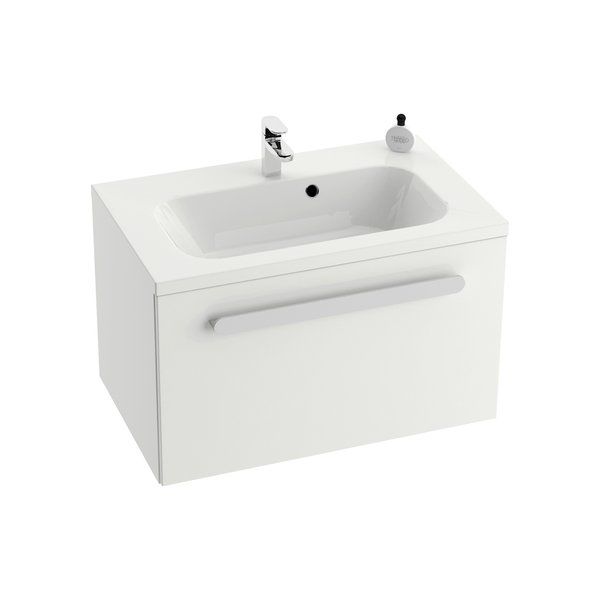 Простой уход осуществляется благодаря форме изделий, материалом отделки и подвесным тумбам.