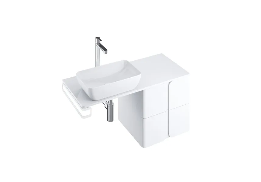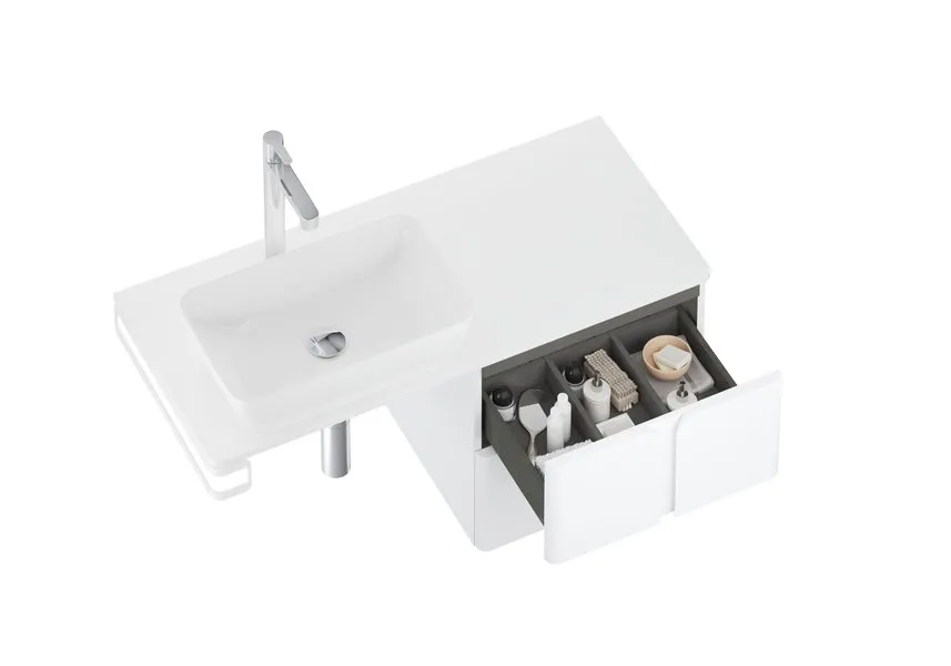Аксессуары: умывальник Balance 500, сифон с фиксированным сливом, столешница Balance 1200, консоль к столешнице Balance/Comfort 1200, полотенцедержатель Balance, умывальник для столешницы (например Uni, Uni Slim)Элементом дизайна подвесной тумбы являются внушительные фрезерованные вырезы на передних поверхностях, благодаря которым легко пользоваться двумя выдвижными ящиками, оснащенных механизмом с доводчиками.