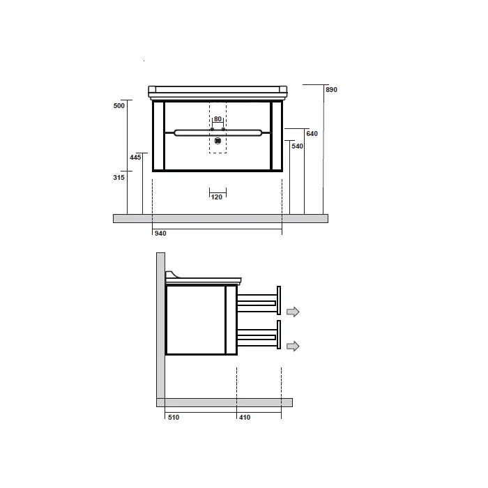 Тумба подвесная под раковину Kerasan Waldorf 100, с 2-мя ящиками, черный матовый/Nero matt 925531
