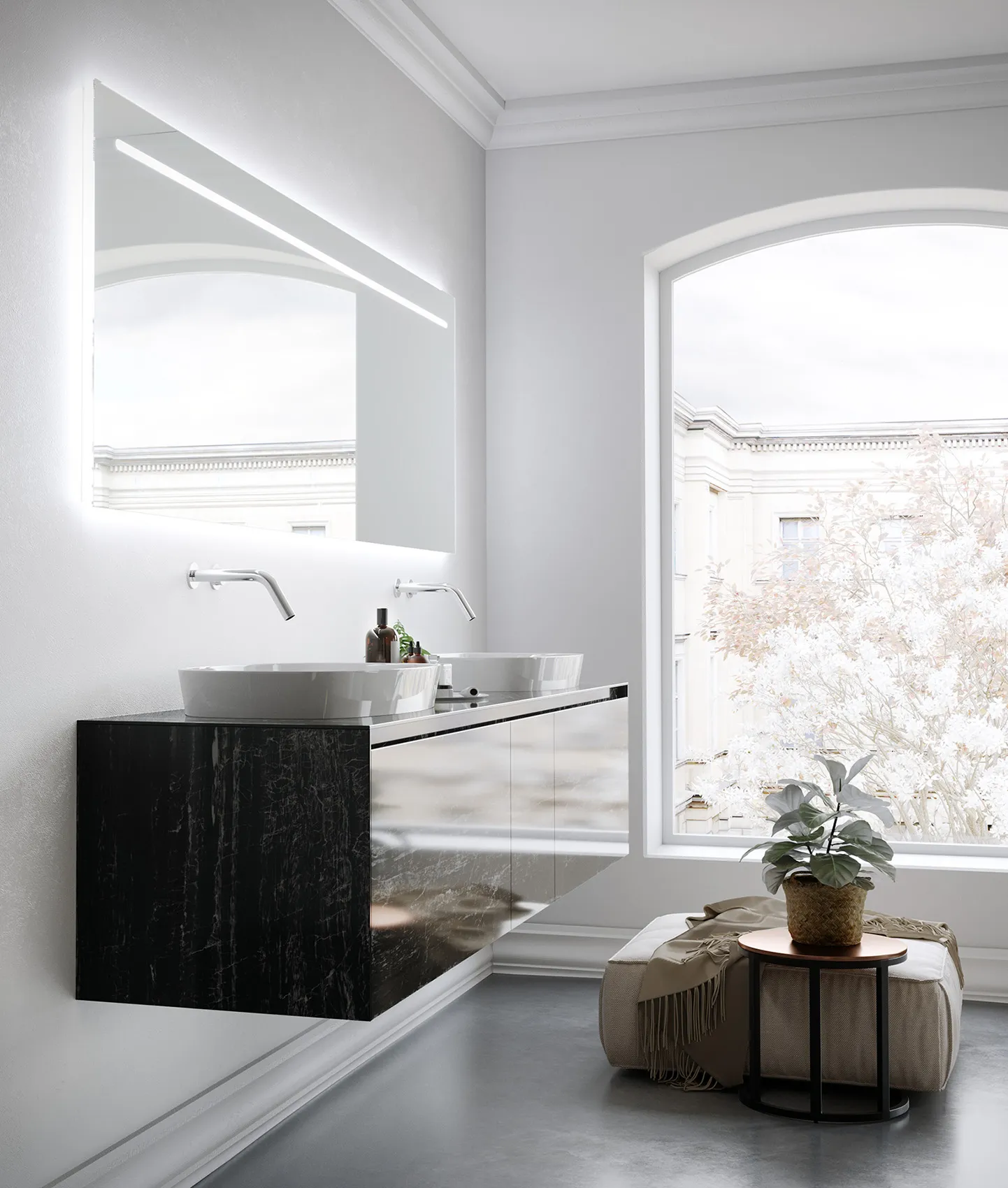 Scala — современный, свежий взгляд на дизайн ванной комнаты. Четкое сопряжение элементов, идеальные линии, внимание к деталям — вот тот фундамент на котором строится вся коллекция. В итоге мы рады представить Вашему вниманию инновационную, высокотехнологичную, модульную коллекцию, созданную для поклонников современного направления в дизайне. Только современные технологии обработки керамогранита позволяют идеально выполнить Все детали и элементы мебели коллекции Scala, внимание к фактуре и текстуре материала, индивидуальный подход к модельному ряду, обеспечивает эксклюзивность каждого изделия. Многочисленные композиции и варианты размеров модулей начиная позволяют коллекции Scala быть «своей» как в уютных небольших интерьерах , так и в просторных объемных пространствах.