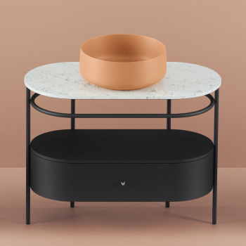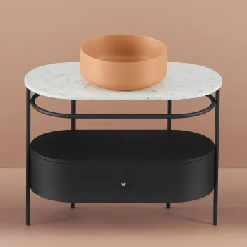 Консоль металлическая с раковиной Artceram Flair 4.0 95x48хh75, напольная, с 1 ящиком и мраморной столешницей, черный матовый/orange cameo TFA010 47