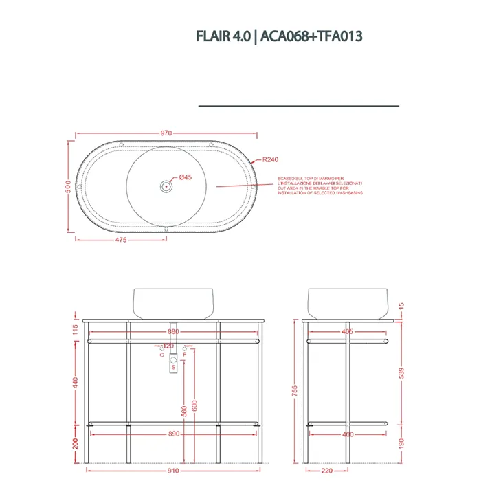 Консоль металлическая с раковиной Artceram Flair TFA013 05