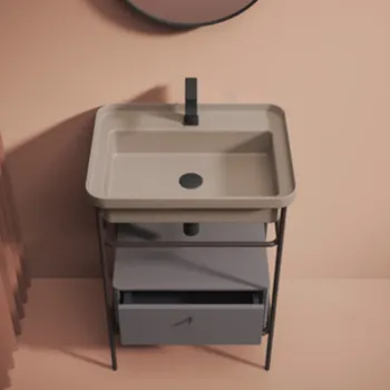 Консоль металлическая с раковиной Artceram Fuori Scala 57х42.5х83, напольная, с выдвижным ящиком, moka/matera ACA056 56