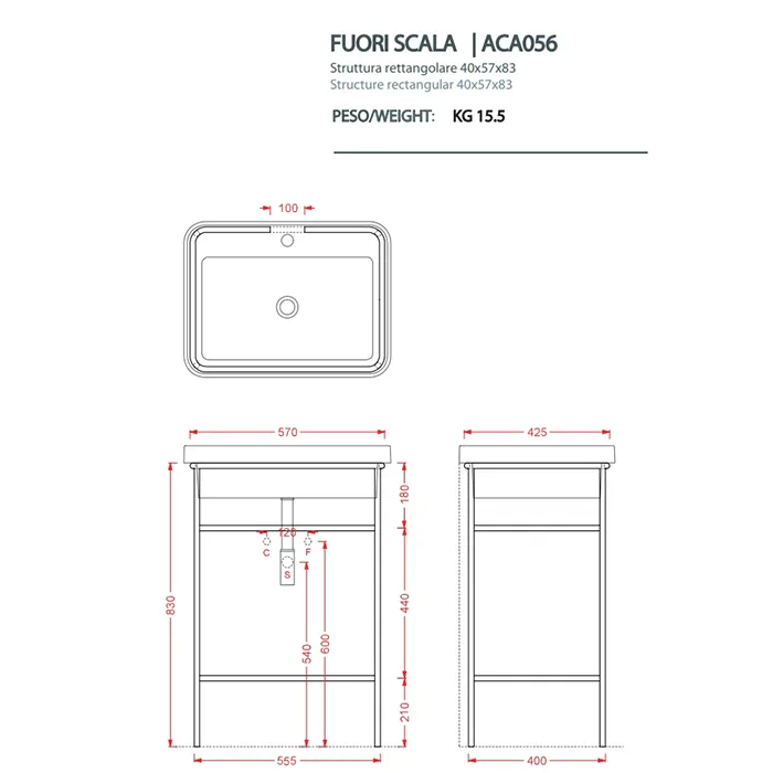 Металическая структура с раковиной Artceram Fuori Scala 40x57хh83, на 1 отв. напольная, черный матовый ACA056 17