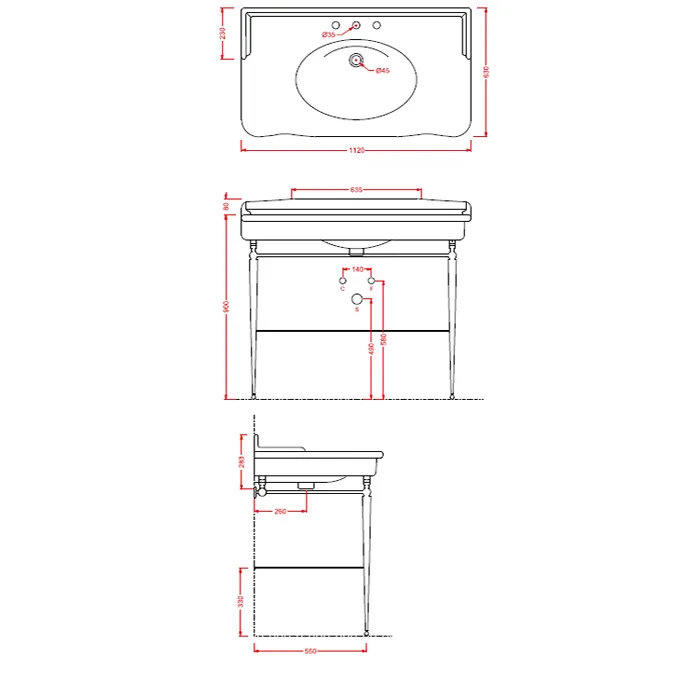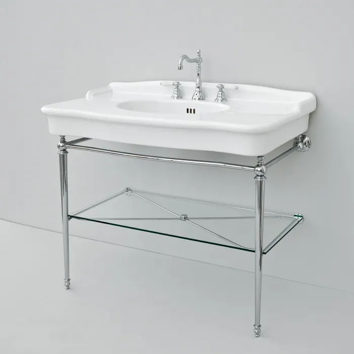 Металлическая структура с раковиной Artceram HERMITAGE 112х63, на 3 отв., со стеклянной полкой, напольная, хром, HEA017 71 cr