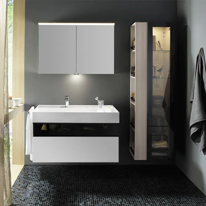 Burgbad Yumo База 101.5х64х47см.с умыв из мин литья с 1 отв под смес,2 выдв ящика с ручкой Мокка G0179.верхн ящик из дымч стекла, подвесная, цвет: белый глянц. SFKL102 F3193 G0179 C0001*1