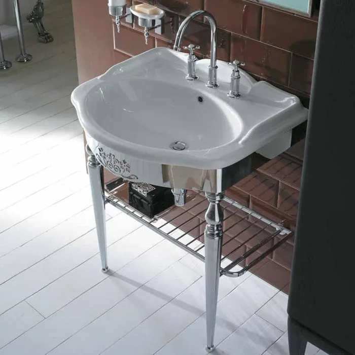 Консоль с раковиной латунь напольная Globo Paestum 71х58хh80,5см на 3 отв,, хром PA0063.BI