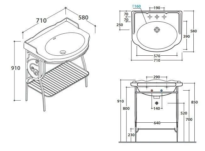 Консоль с раковиной напольная Globo Paestum 71х58см, на 1 отв., met.antico, раковина белая PA034 met.antico