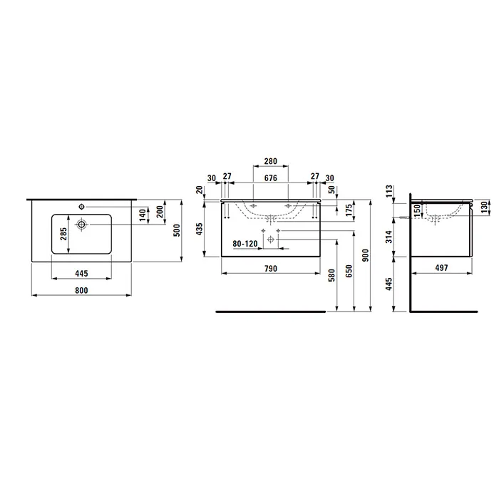 Laufen PRO S комплект: шкафчик с раковиной на 1 отв, 800х500х460 мм, с раковиной Slim 800 мм, 1 внутр. ящик, вкл.орган.для ящика, белый глянцевый