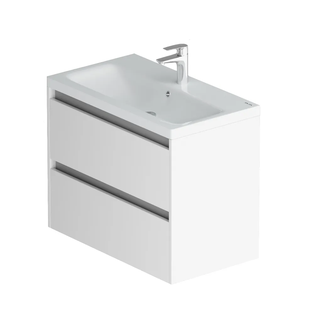 Выгодное предложение. Мебель для ванной Pulse в стиле минимализм. Белые глянцевые фасады дополнены вставкой в цвете графит. Внутреннее покрытие каждого ящика выполнено в современном цвете Anthracite и имеет противоскользящее покрытие. Мягкое открытие и закрытие ящиков обеспечивают направляющие скрытого монтажа с системой мягкого закрывания soft close.