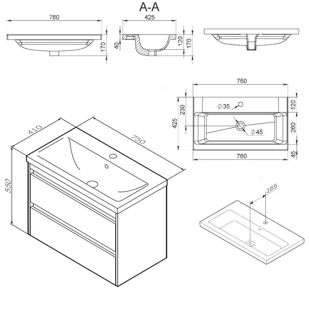 - Форма раковины: прямоугольная