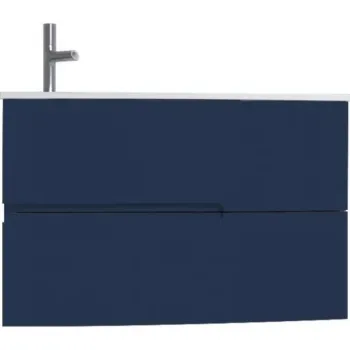 EB1884RU-DE1+EB1888RU-G98 Комплект Nona стеклянная раковина, матовый белый, 80 см + Nona Мебель с интегрированными ручками, глянцевый темно-синий, 80