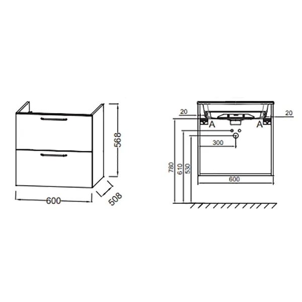 EB2520-R9-E52+EXBA112-Z-00 ODEON RIVE Мебель для раковины-столешницы, 60 см+Раковина 60 см