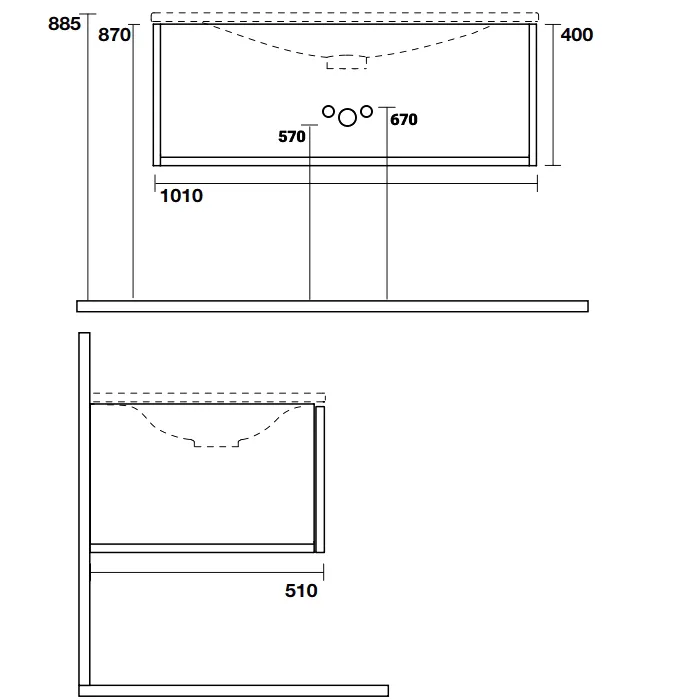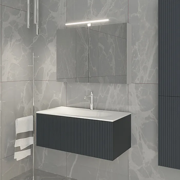 Тумба с раковиной Tw Shape Kerasan 547001x1, 102х52, с 1-м выдвиж. ящиком с механизмом push to open, серый матовый ral7016 SHAP100-G+547001*1