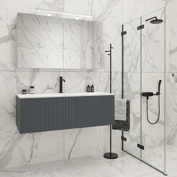 Тумба с раковиной Tw Shape Kerasan 548001x1, 122х52, с 1-м выдвиж. ящиком с механизмом push to open, серый матовый ral7016 SHAP120-G+548001*1