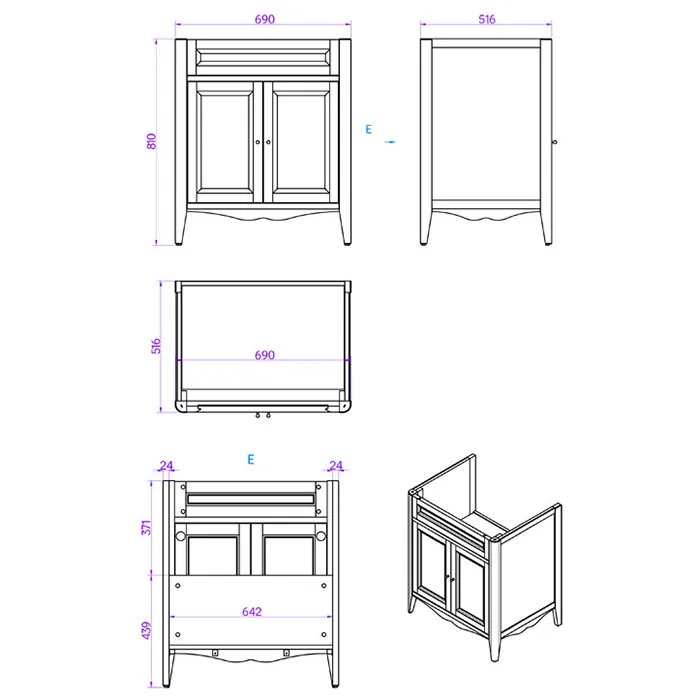 Тумба с раковиной Tw Veronica Simas AR834bix1 73x54см с 1отв. под смеситель, 2 расп. дверки, доводч. Blum, ручки Riflesso бронза, tortora VER2073-T+AR834bi*1 комплект