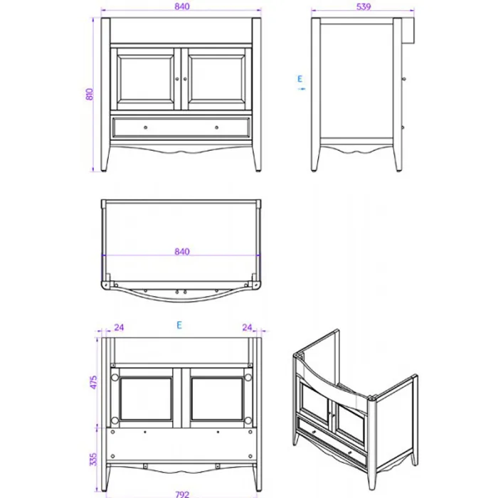 Тумба с раковиной Tw Veronica Simas AR864bix1 90x56, с 1отв., 2 распашные дверки+1 выдв.ящик, доводч. Blum, ручки Riflesso бронза, tortora VER3090-T+AR864bi*1 комплект