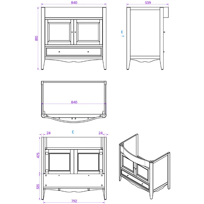 Тумба с раковиной Tw Veronica Simas AR864bix1 90x56, с 1отв., 2 распашные дверки+1 выдв.ящик, доводч. Blum, ручки Riflesso бронза, noce VER3090-N+AR864bi*1 комплект