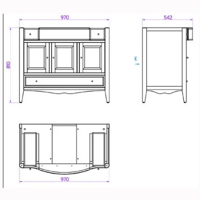 Тумба с раковиной Tw Veronica Simas AR874bix1 105x56, 2 верх.ящ. 3 расп. дв. и 1 выдв. ящик, доводч. Blum, ручки Riflesso бронза, grigio VER6105-G+AR874bi*1 комплект