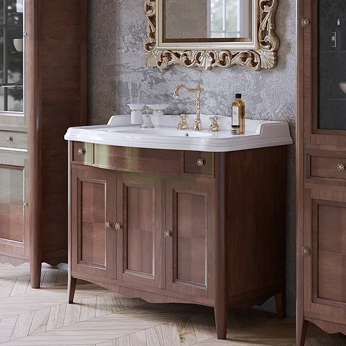 Тумба с раковиной Tw Veronica Simas AR874bix1 105x56, с 1отв., 2 верх.ящ. 3 распашные дверки, доводч. Blum, ручки Riflesso бронза, noce VER5105-N+AR874bi*1 комплект