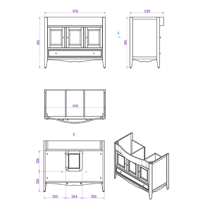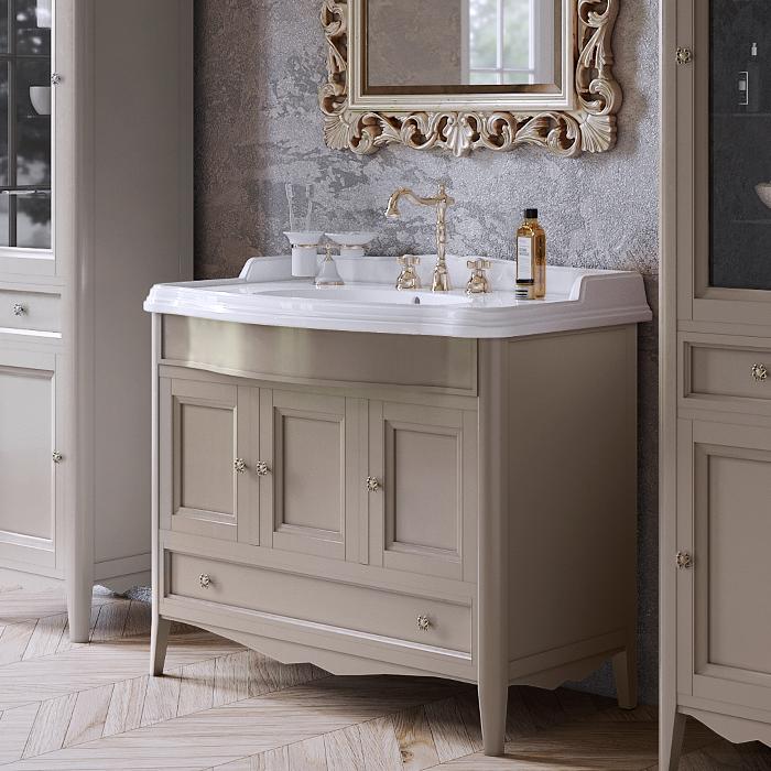 Тумба с раковиной Tw Veronica Simas AR874bix1 105x56, с 1отв., 3 расп. дв. и 1ящик, доводч. Blum, ручки Riflesso бронза, tortora VER4105-T+AR874bi*1 комплект