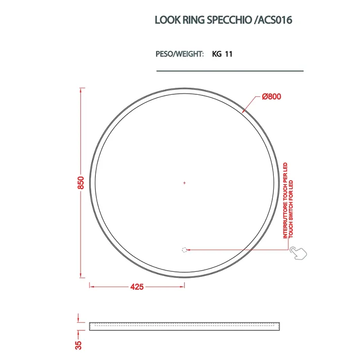 Зеркало Artceram Look 85, в металлической раме с LED-подсветкой и сенсорным выключателем, черный матовый ACS016 17