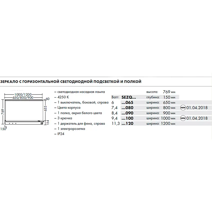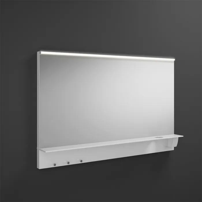 BURGBAD Eqio Зеркало с полкой , светодиод подсв.120х76.9х15см, выкл сбоку справа, 3 крючка, держ для фена справа. SEZQ120F2009