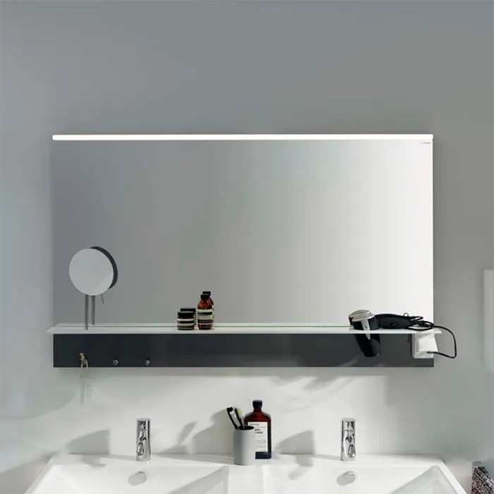 BURGBAD Eqio Зеркало с полкой , светодиод подсв.120х76.9х15см,выкл сбоку справа, 3 крючка, держ для