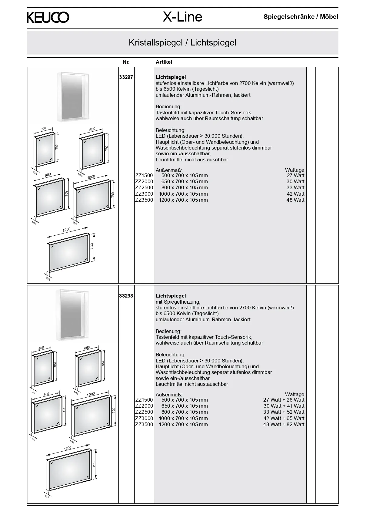 Зеркало с подсветкой Keuco PLAN, 33098302500, 800x700x105 мм, с подогревом, белый