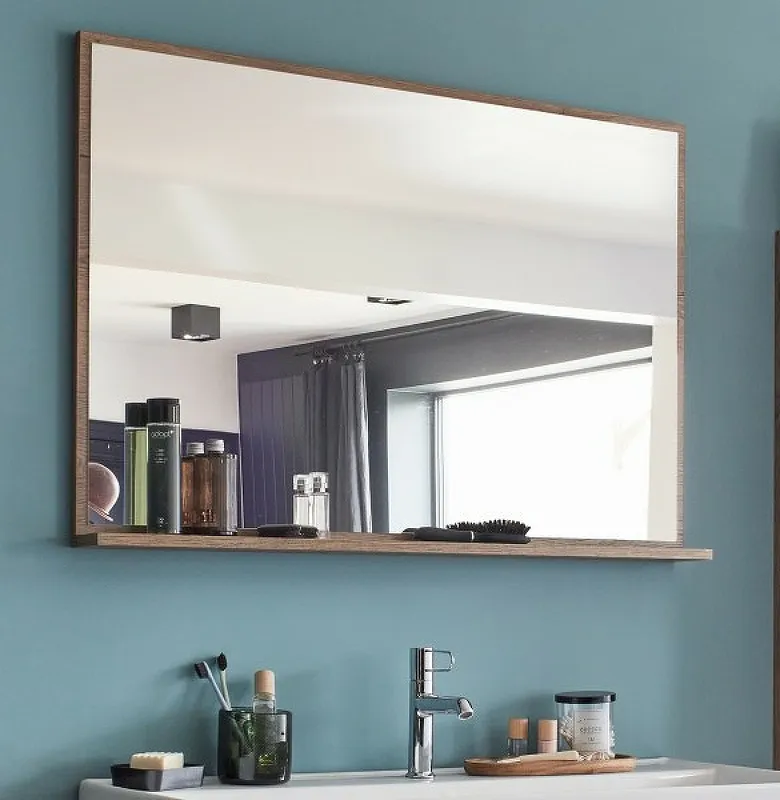 Широкое зеркало с полкой для хранения.