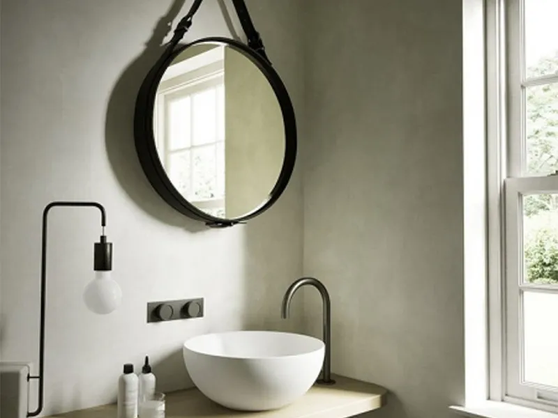 Зеркало HATRIA SC0600D0000, с черной рамкой и ремнем из искусственной кожи, диаметр 60 см.