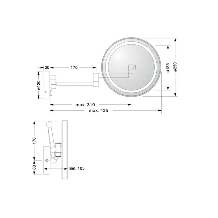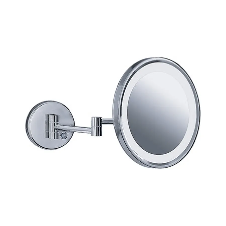 Joerger Valencia Зеркало настенное, косметическое, подсветка с сенсорным управлением, поворотное и выдвижное, с 3-кратным увеличением, прямое подключение, диаметр зеркального полотна 18,5 см., общий диаметр зеркала 25 см. Цвет розовое золото. Подходит для любой коллекции Joerger.