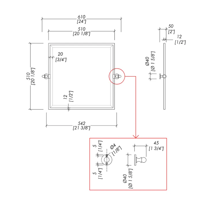 Зеркало настенное квадратное Devon&Devon First Class 51/61х50хh51cм фурнитура, хром DD33110CR