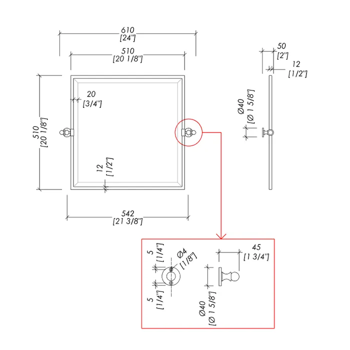 Зеркало настенное квадратное Devon&Devon First Class 51/61х50хh51cм фурнитура, золото светлое DD33110OT